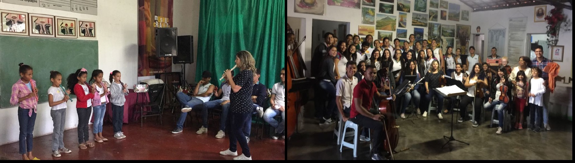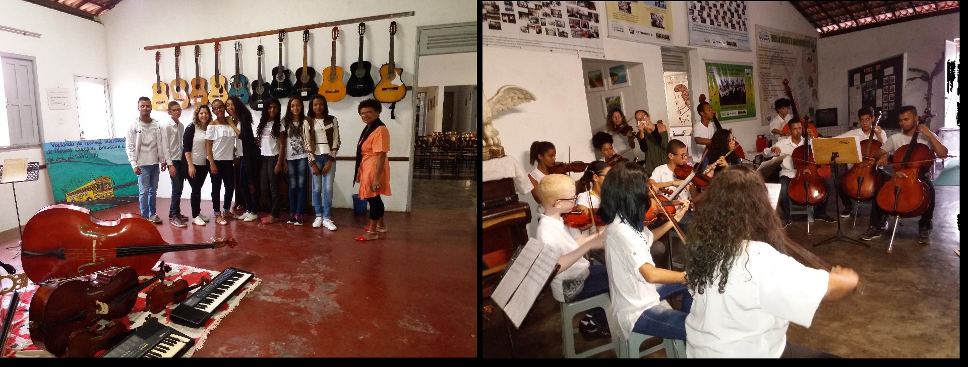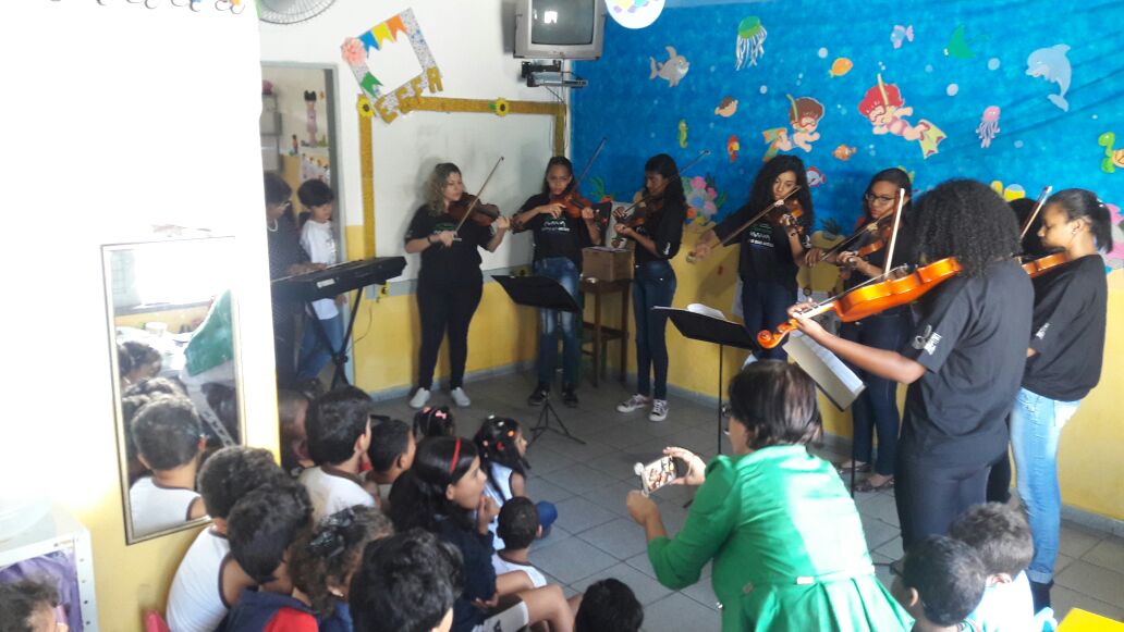 As oficinas vem acontecendo de forma diversa atendendo as diferentes modalidades de instrumentos: violino, viola, violoncelo, teclado, também canto coral e atrelado a estas, atividades voltadas para os temas transversais.