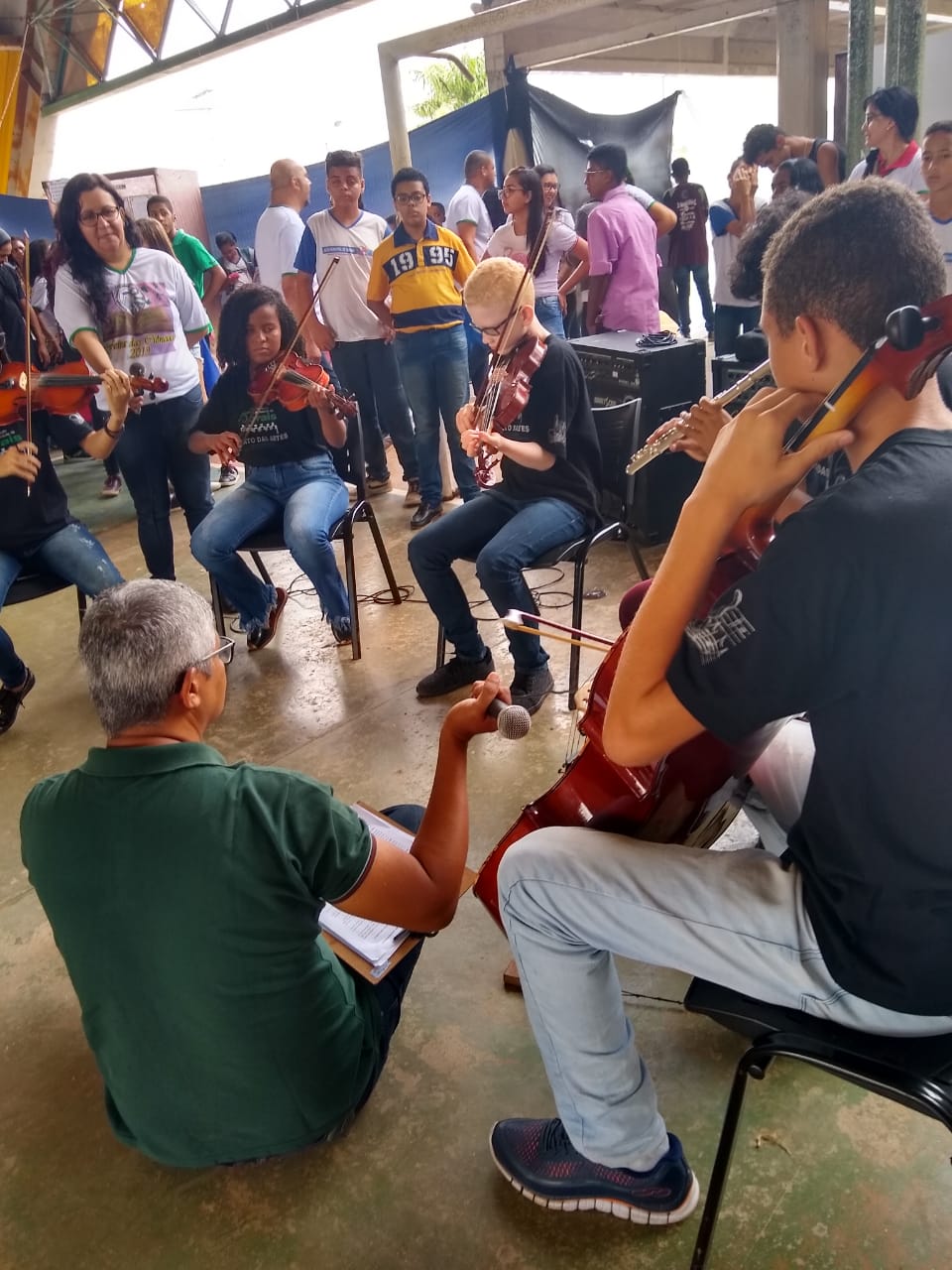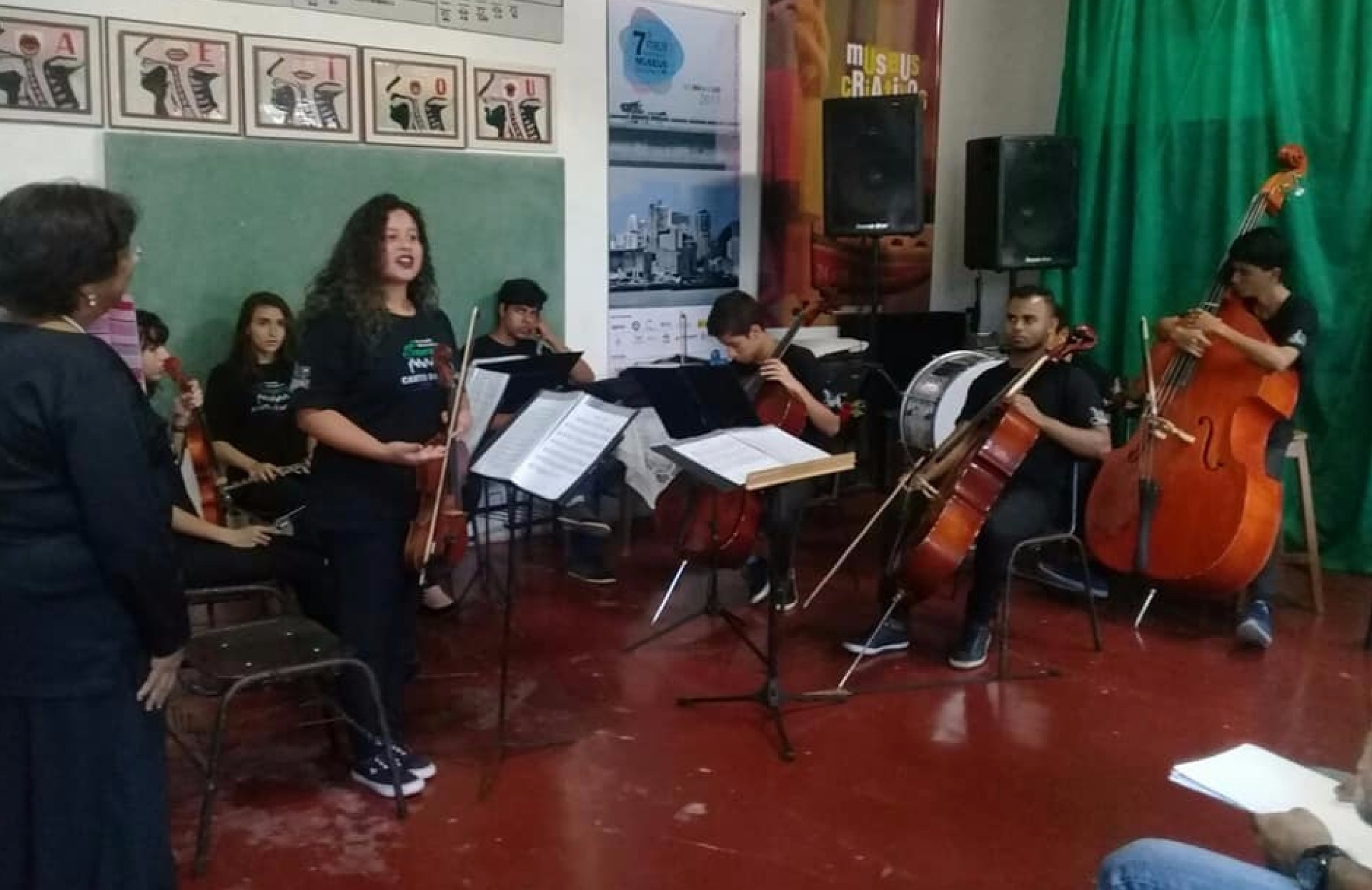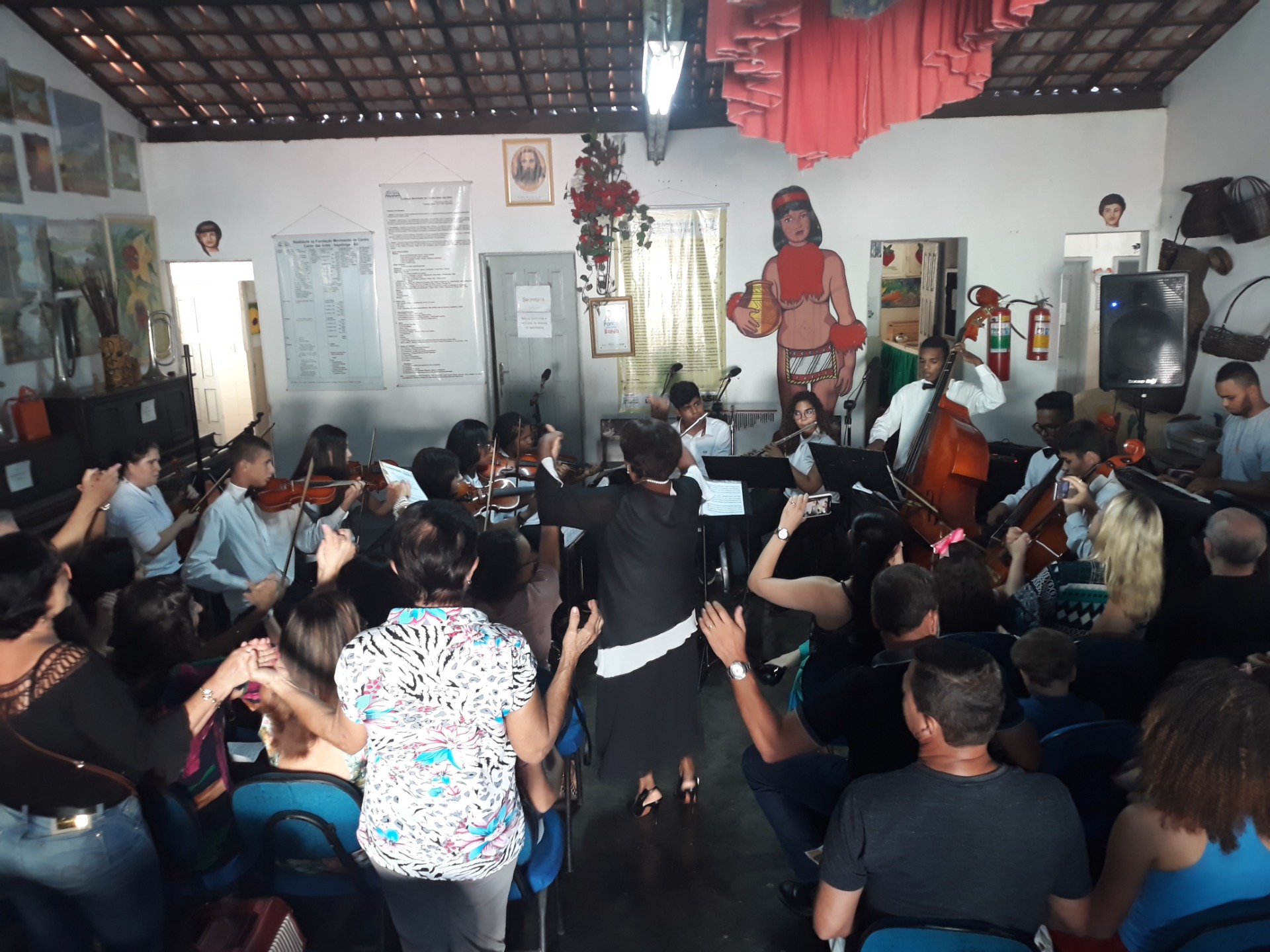 O ano letivo na Fundação Canto das Artes iniciou com muita energia positiva ao som da Orquestra de Câmara acompanhado de pronunciamentos por parte da diretoria presente - Leniza Souza Santos, juntamente com a professora Denise Alencar e professor Murilo.