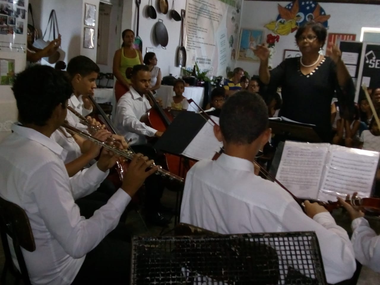 A professora Leniza Souza Santos, a professora Denise Alencar,o auxiliar Nicácio Ribeiro, a professora Áurea de Souza juntamente com os alunos da Orquestra, os pais e apoiadores se empenharam para que o evento acontecesse de forma brilhante. Foi um sucesso total !!!