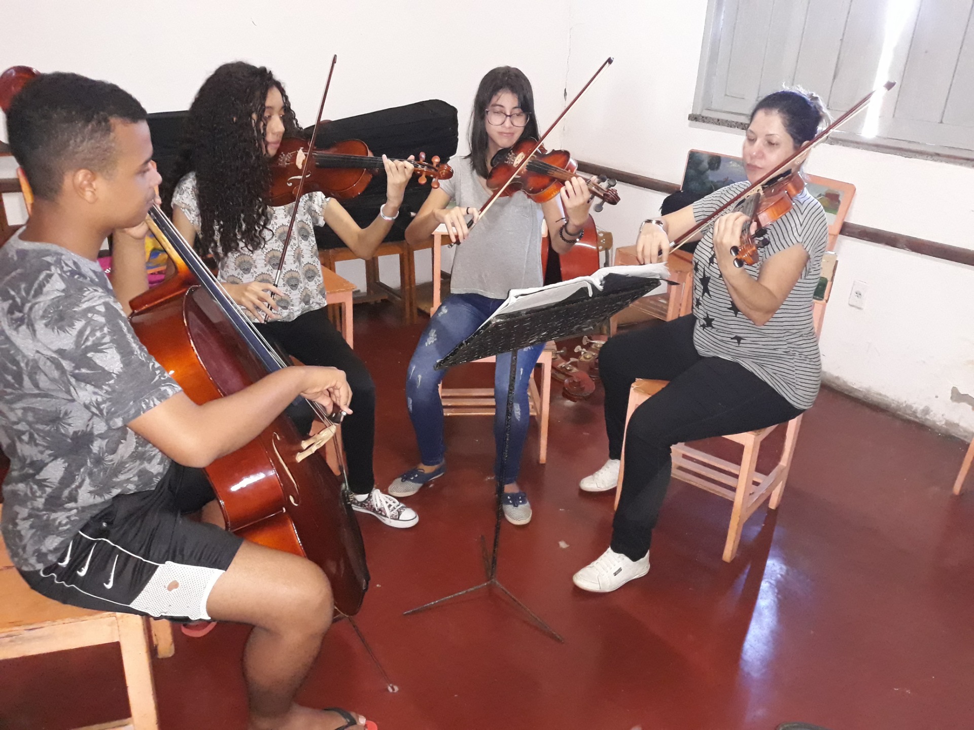 Turma de violino iniciante. Aula dia 07 de agosto - vespertino.