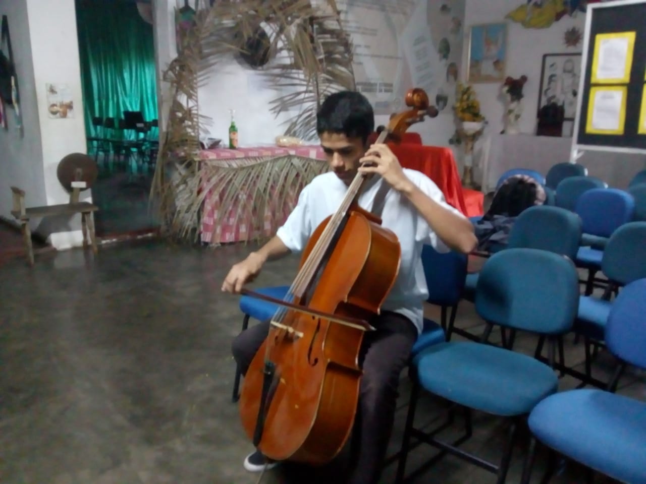 Momento de fé e louvor no Ponto de Cultura Fundação Movimento de Corais Canto das Artes.