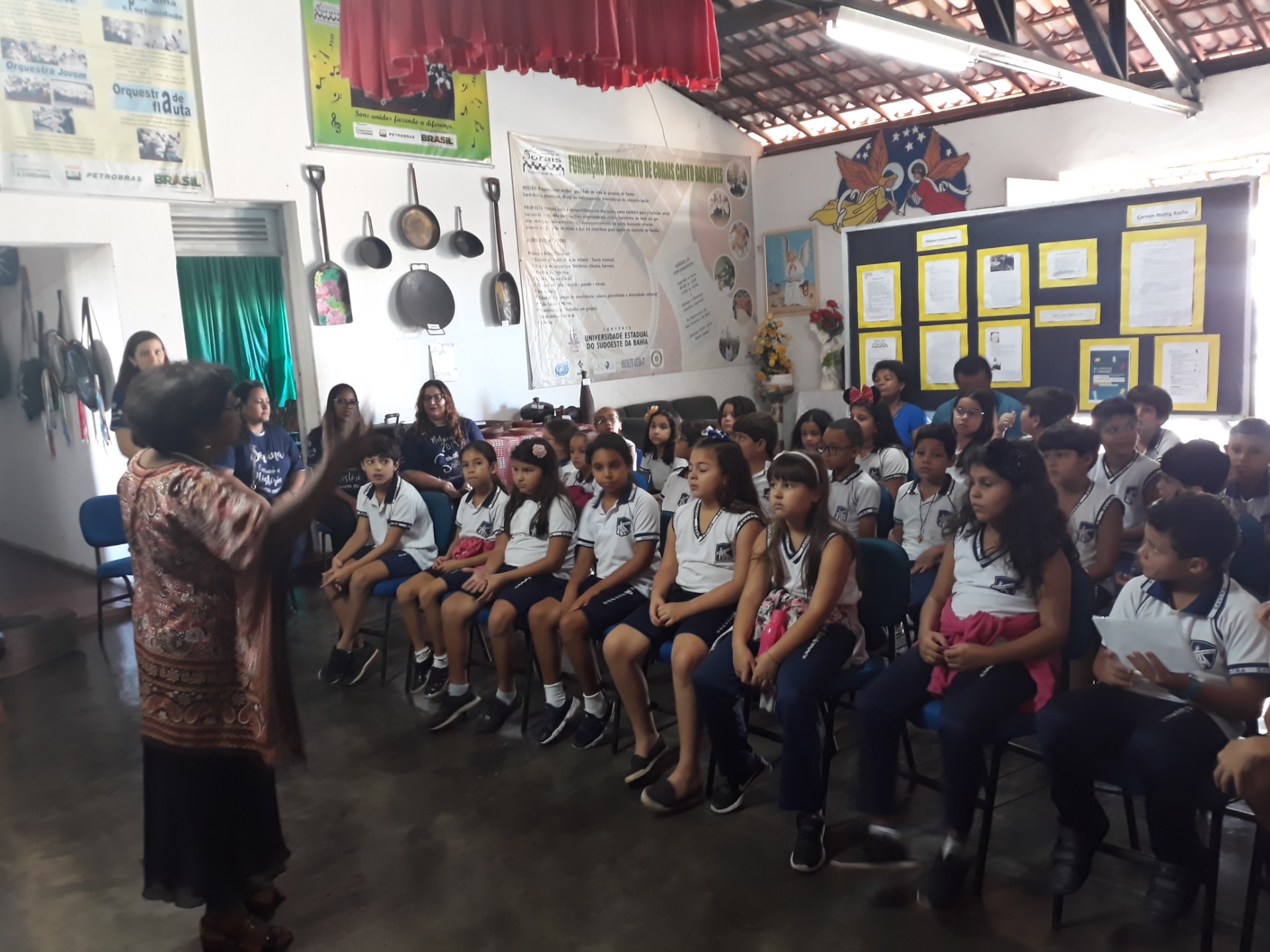 Na noite desta terça-feira 17, na sede da Fundação Canto das Artes, alunos da Escola Estadual Alfredo Dutra participaram de um musical com os alunos da Orquestra Experimental da Fundação e, ainda puderam ouvir uma palestra ministrada pela coordenadora pedagógica da instituição, a professora Maria Áurea de Souza. A fundação agradece ao professor Armando, bem como aos representantes do Departamento de Cultura Eduardo Fiscina e Ilva Carolina, que se fizeram presentes, bem como Cristal Ferraz, representante Territorial de Cultura do Médio Sudoeste da Bahia.